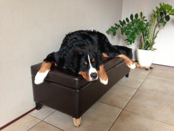 Haha vi havde en trappe som Maximum Sejer var startet på at nedbryde da han var hvalp. Vi havde fået et godt råd om at skælde trappen ud. Meget skæld ud !!!!! se bort fra hvor fjollet man føler sig over at tale til et trappetrin ;-)mens pelsdyret hørte det. Og dragede sine bernerkonklusioner :. “trappen har gjort noget helt forkert”Så smurte vi sennep på bidestedet på trappen og vi har trappen endnu. Kun med nogle små bibemærkning fra dengang for ca 7-8 år siden.